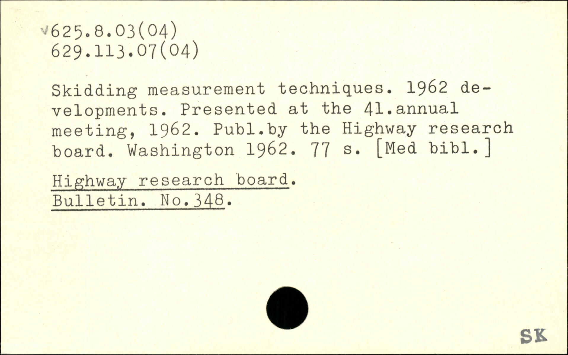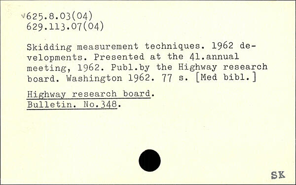 Skidding measurement techniques. 1962 developments. Presented at the 41.annual meeting, 1962.