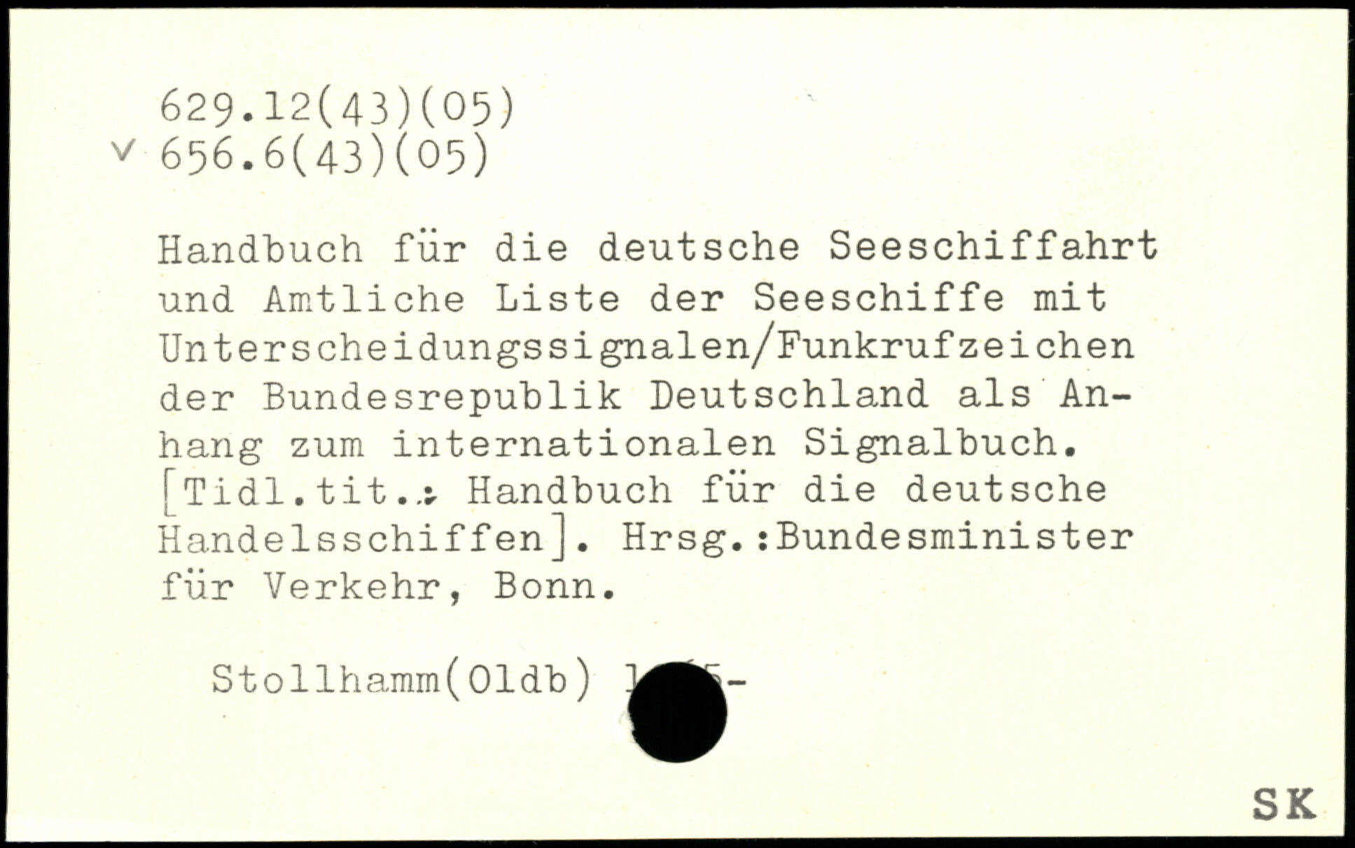 Handbuch für die deutsche Seeschiffahrt und Amtliche Liste der Seeschiffe mit Unterscheidungssignalen/FunkrufZeichen der Bundesrepublik Deutschland als Anhang zum internationalen Signalbuch. [Tidl. titHandbuch für die deutsche Handelsschiffen], Hrsg.:Bundesminister für Verkehr, Bonn. Stollhamm(Oldb)