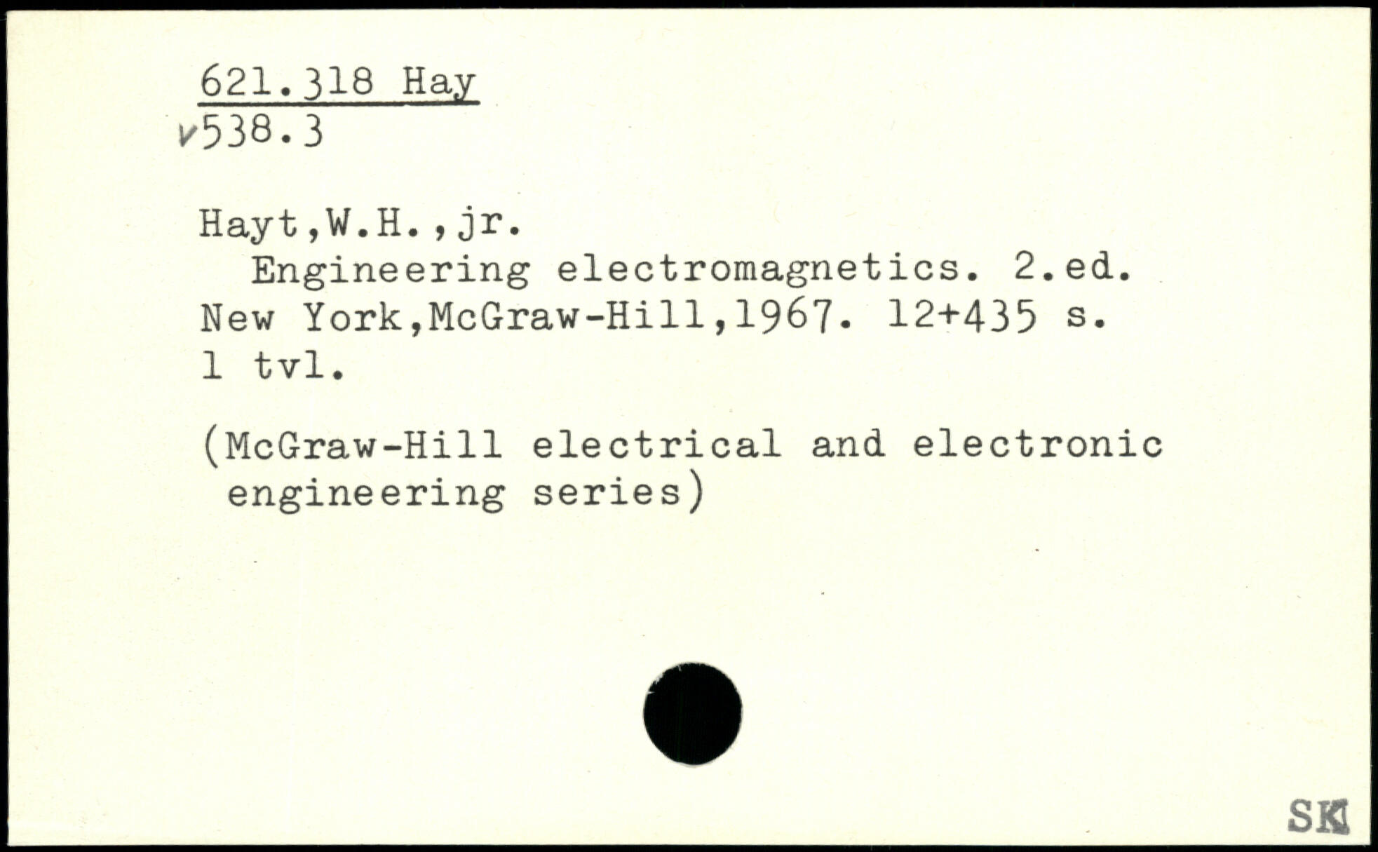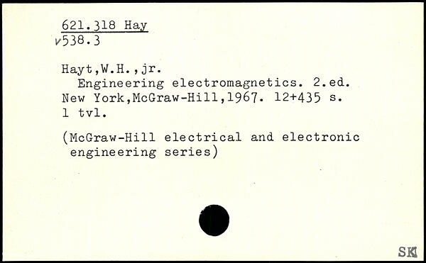 Engineering electromagnetics.