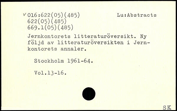 UDK: 016:622(05)(485), 622(05)(485), 669.1(05)(485)