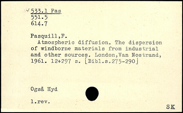 Atmospheric diffusion. The dispersion of windhorne materials from industrial and other sources. London?Van Nostrand, 1961.