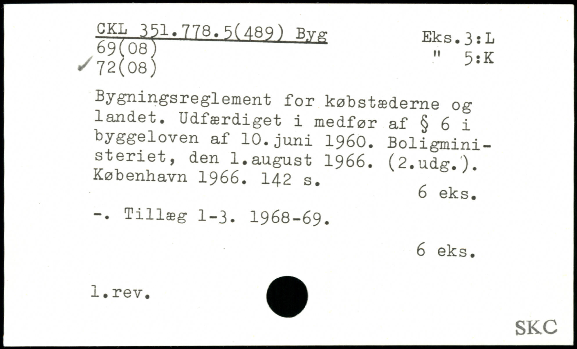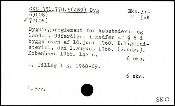 Bygningsreglement for købstæderne og landet. Udfærdiget i medfør af § 6 i Byggeloven af 10.juni 1960. Boligministeriet, den 1.august 1966. (