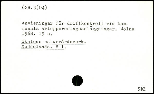Anvisningar för driftkontroll vid kommunala avloppsreningsanlaggningar. Solna 1968.