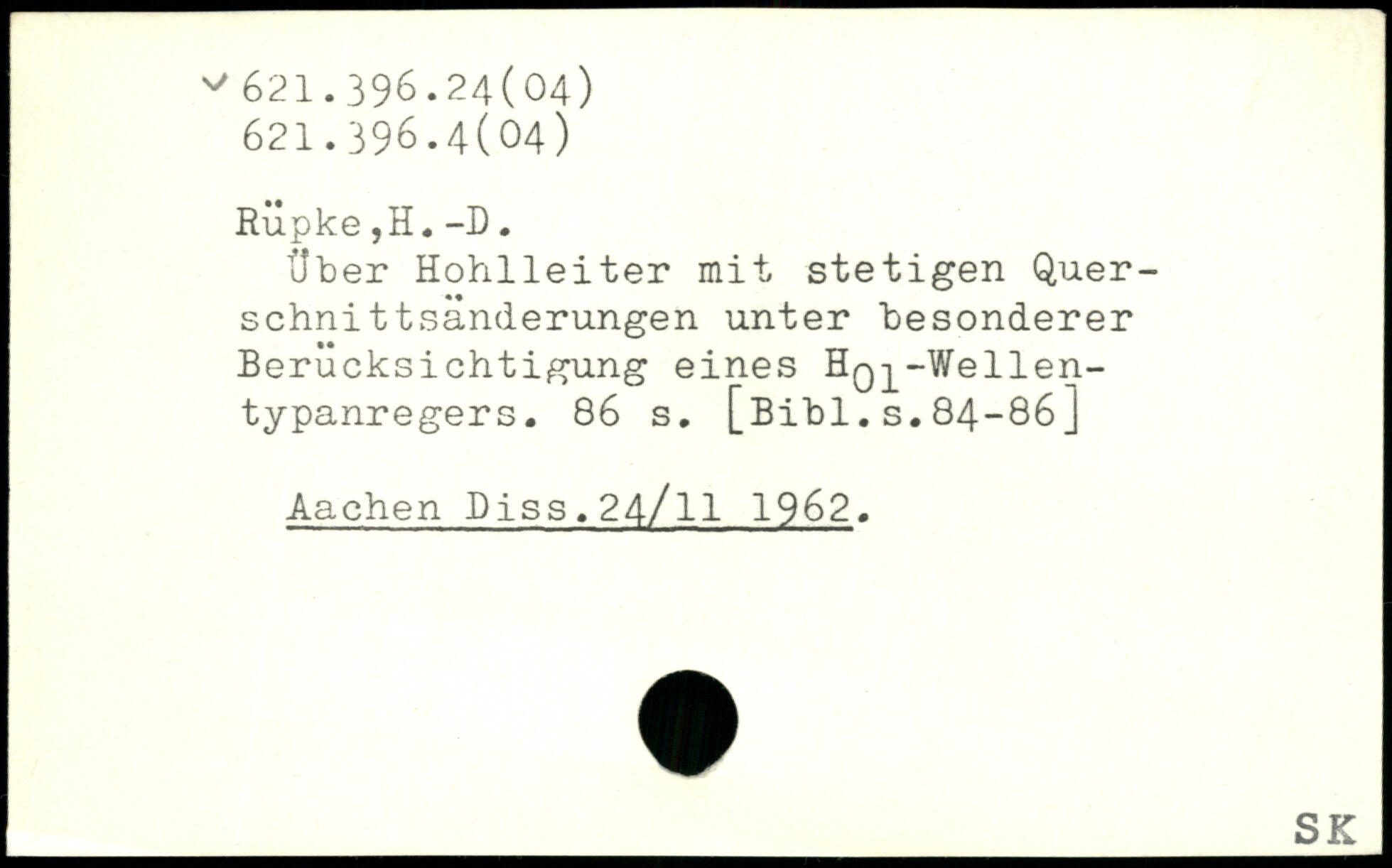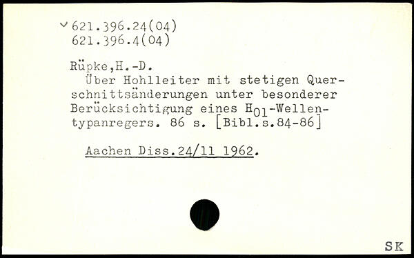Über Hohlleiter mit stetigen Quer-schnit tsänderungen unter besonderer Berücksichtigung eines HQ-^-Wellen-typanregers.