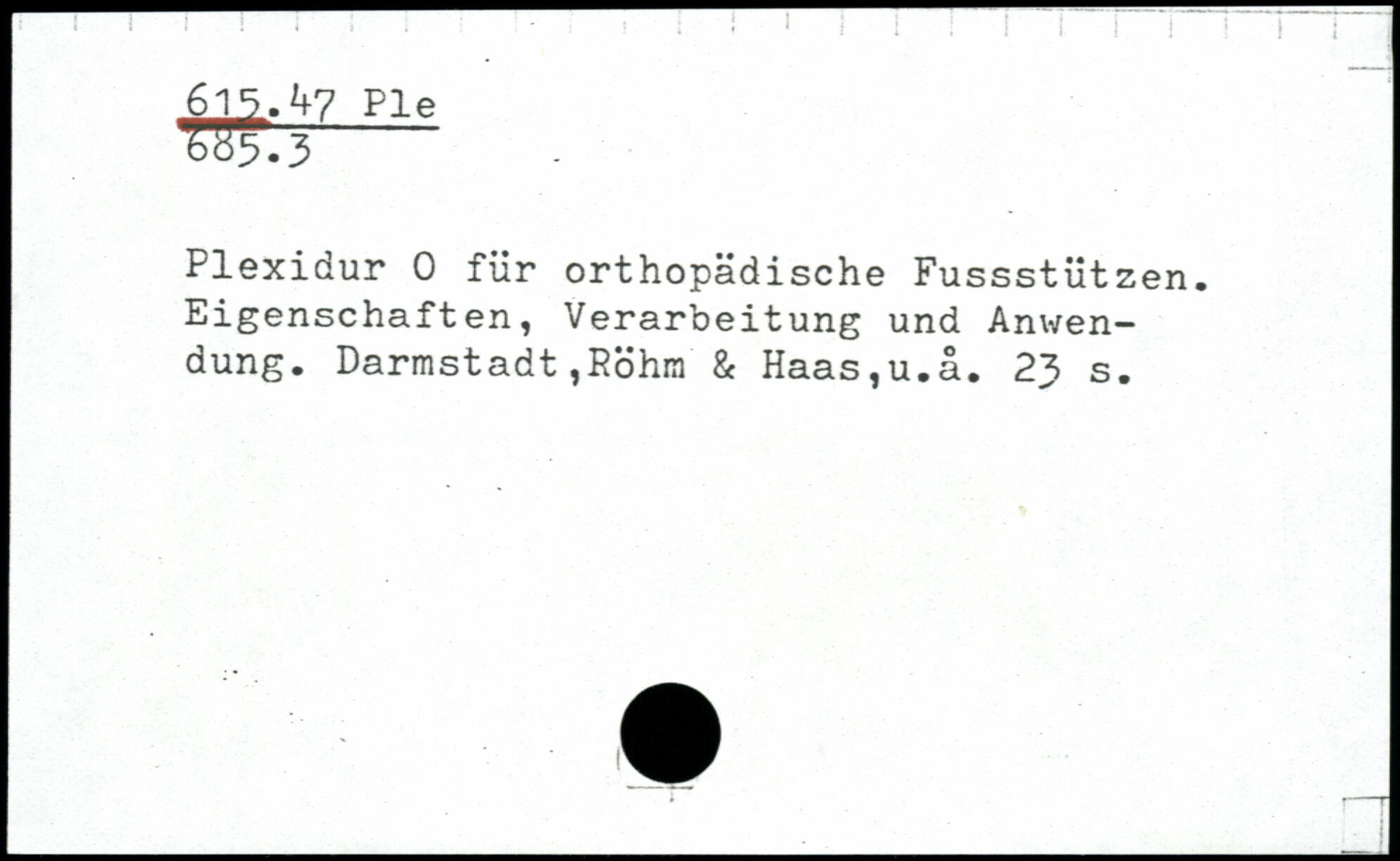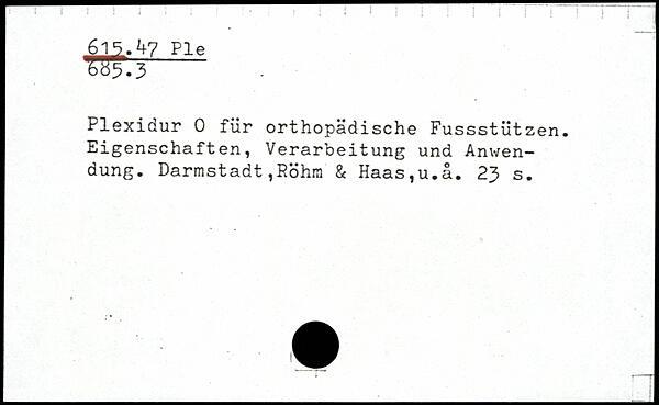 Plexidur 0 für orthopädische Fussstützen. Eigenschaften, Verarbeitung und Anwendung. Darmstadt,Rohm & Haas,u.ä.