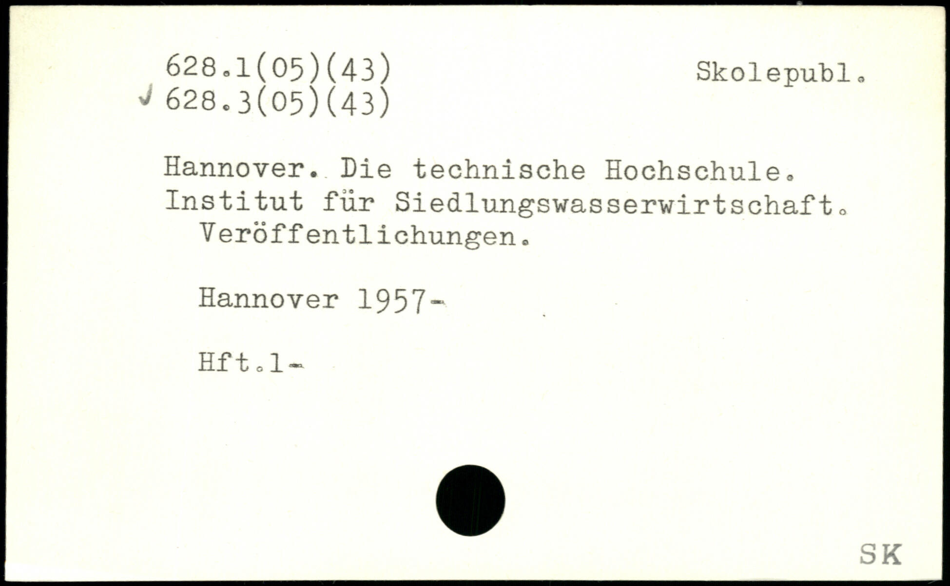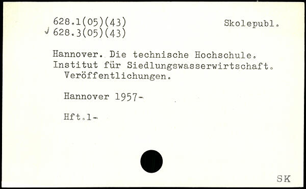 Hannover. Die technische Hochschule. Institut für Siedlungswasserwirtschaft. Veröffentlichungen.