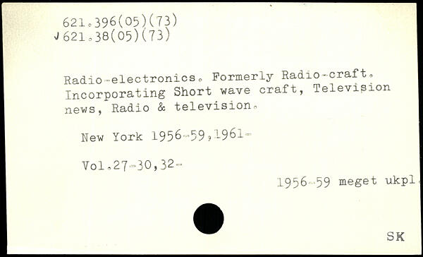 Radio-electronics. Formerly Radio-craft. Incorporating Short wave craft, Television news, Radio & television.