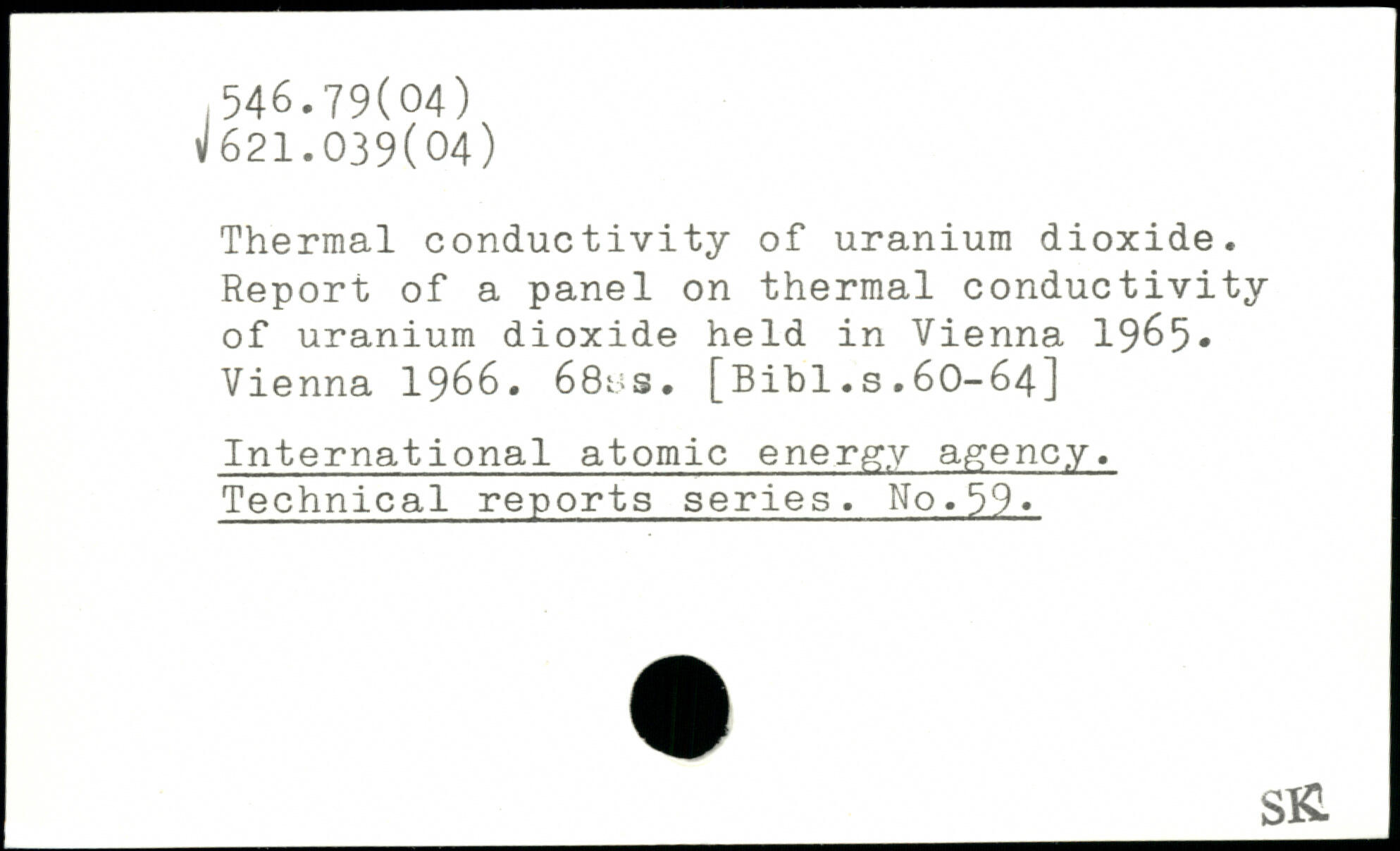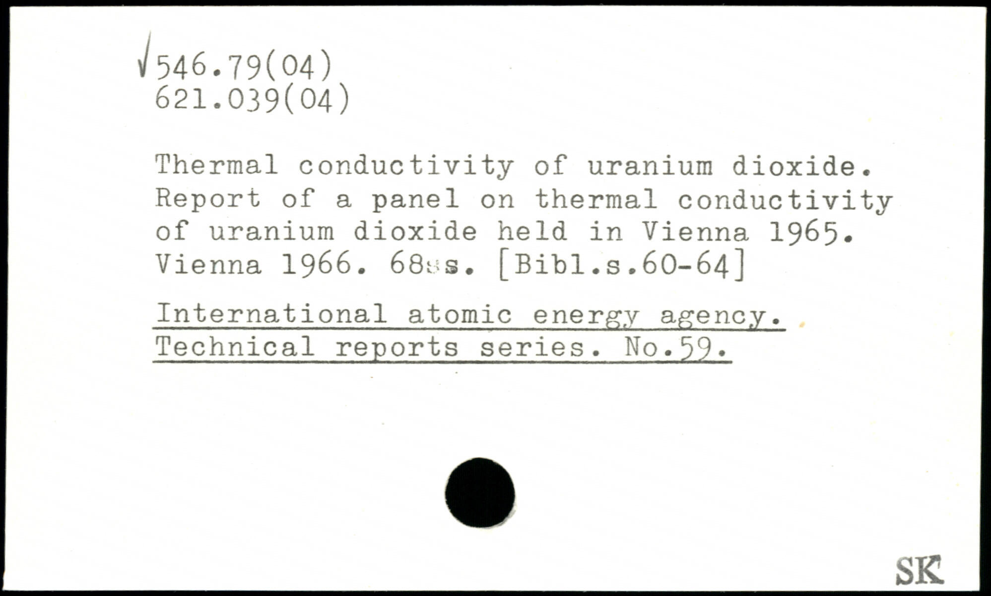 Thermal conductivity of uranium dioxide. Report of a panel on thermal conductivity of uranium dioxide held in Vienna 1965. Vienna 1966. 68us.