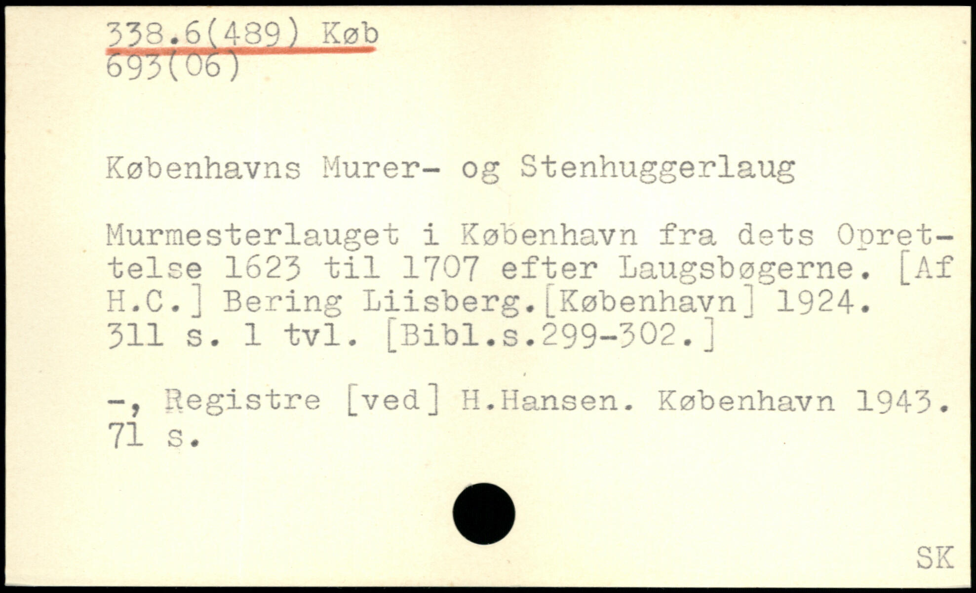 bgTfub) Københavns Murer- og Stenhuggerlaug Murmesterlauget i København fra dets Oprettelse 1623 til 1707 efter laugsbøgerne. [Af H.C.] Bering Liisberg.[København ' 1924.