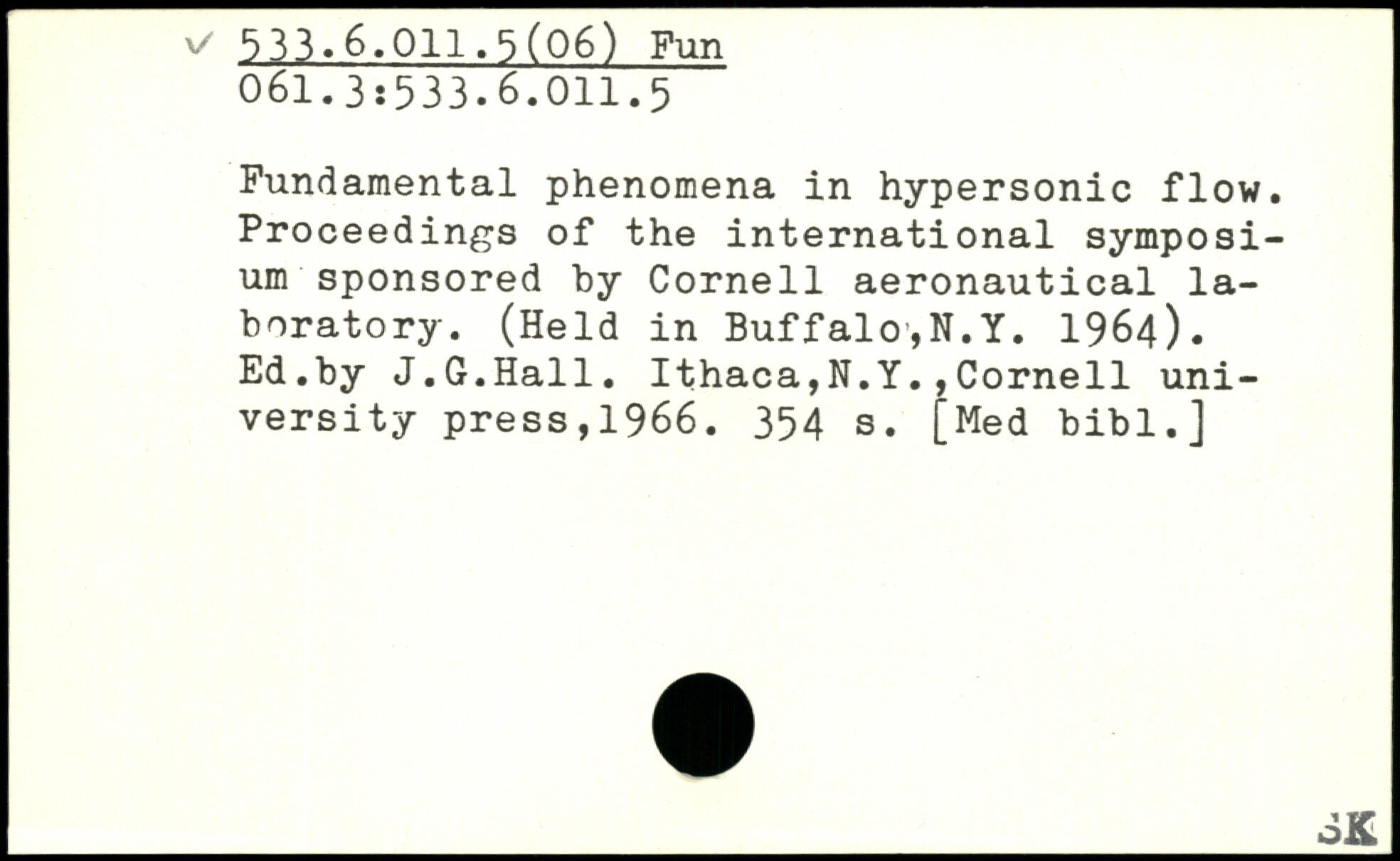 Fundamental phenomena in hypersonic flow. Proceedings of the international symposium sponsored by Cornell aeronautical laboratory. (Held in Buffalo,N.Y. 1964). Ed.by J.G.Hall.