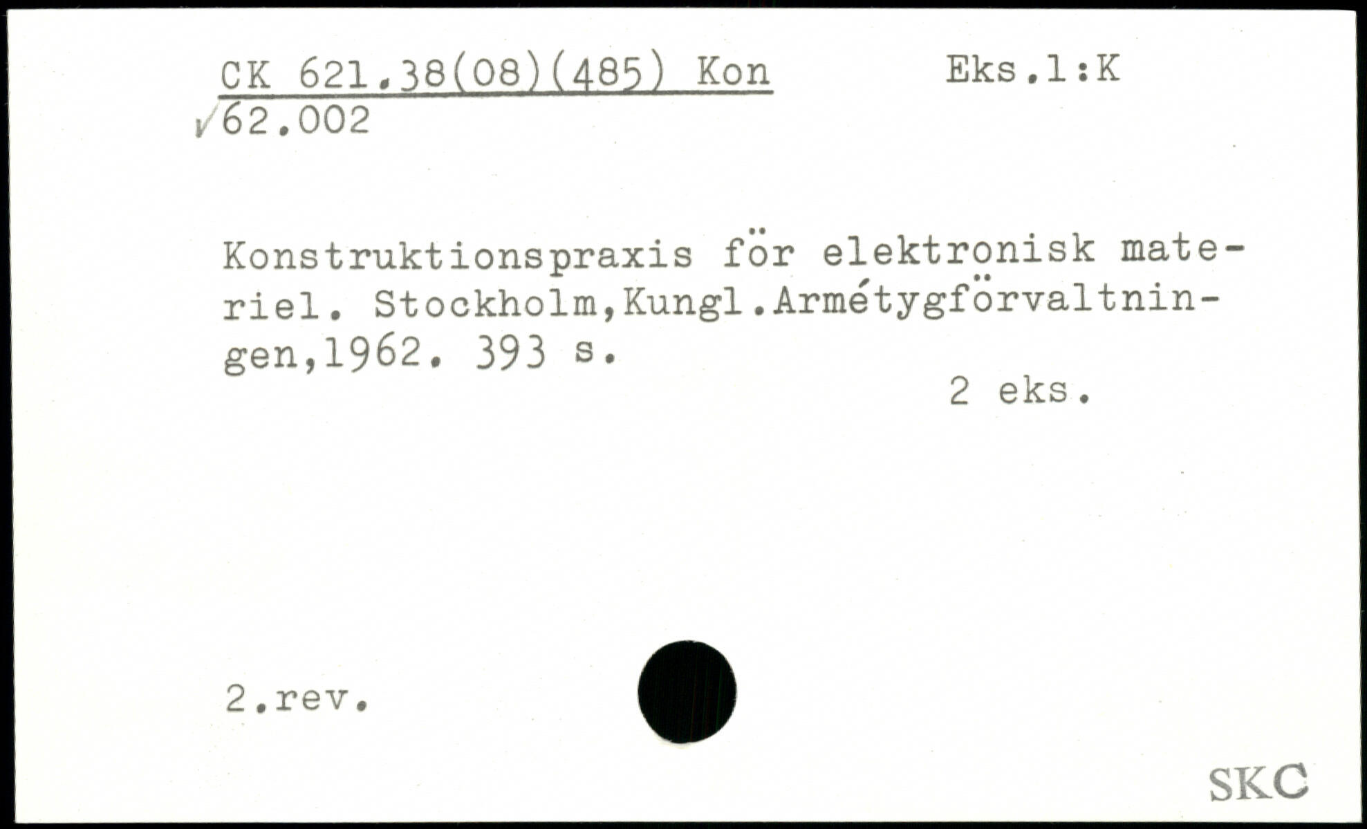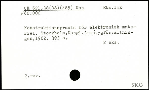 Konstruktionspraxis for elektronisk materiel. Stockholm,Kungl.Armetygförvaltnin- gen,1962