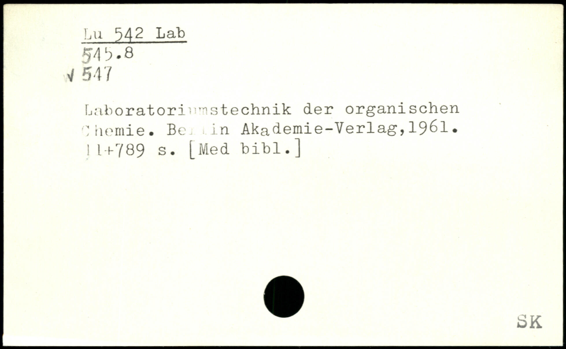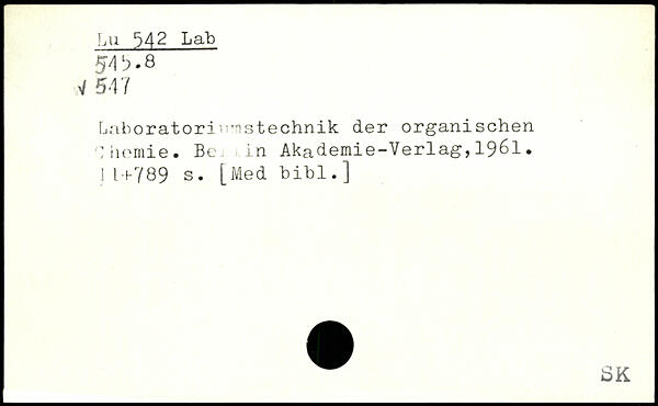 Laboratoriumstechnik der organischen hernie. Be in Akademie-Verlag, 1961.
