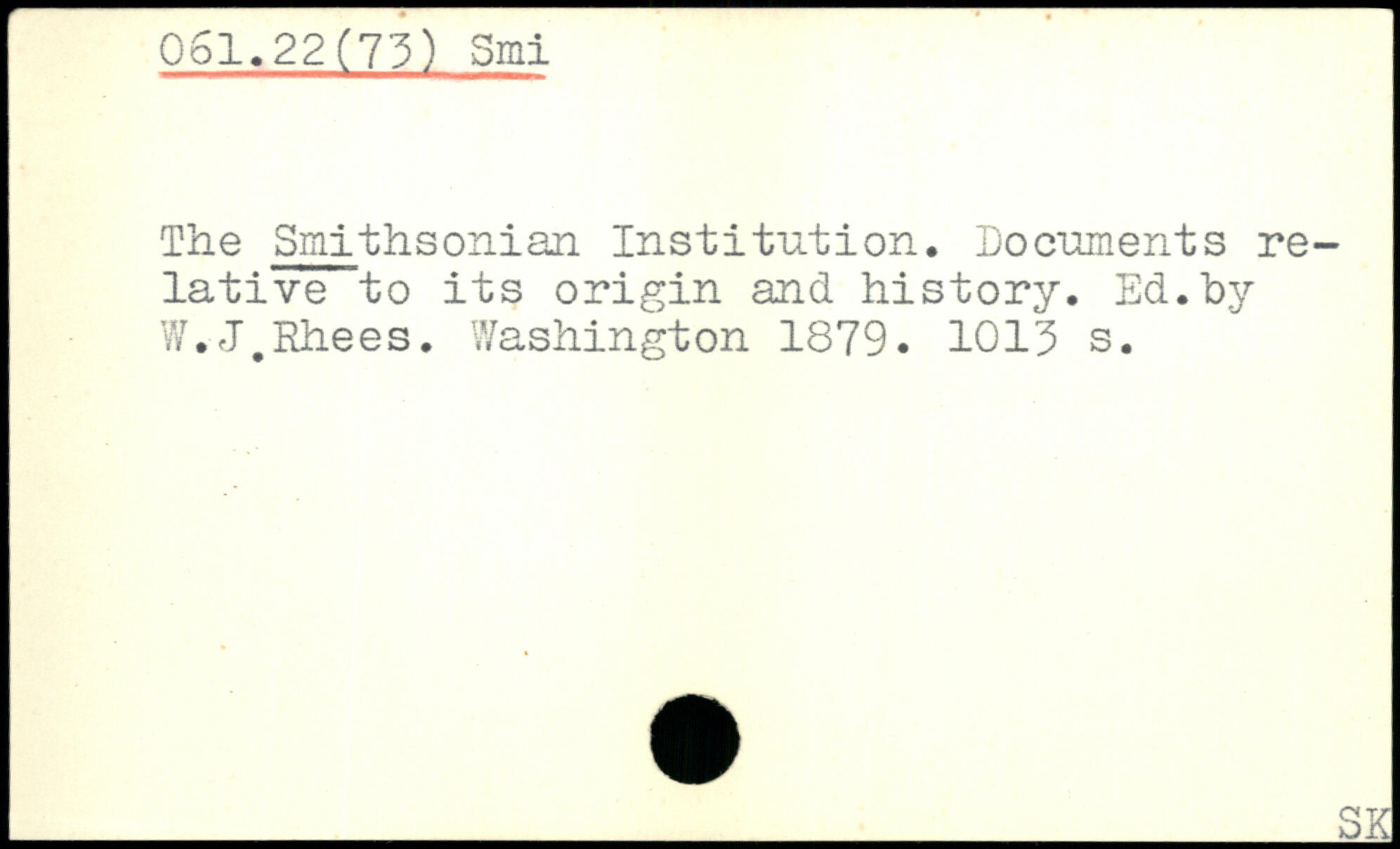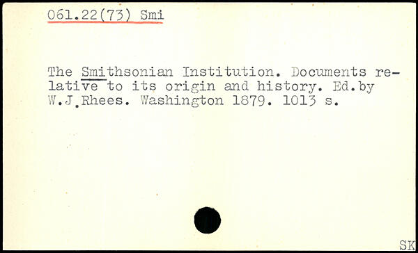 The Smithsonian Institution. Documents relative to its origin and history. Ed.by W.J.Rhees.