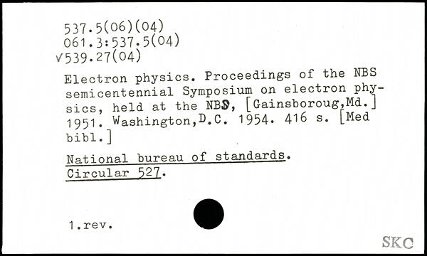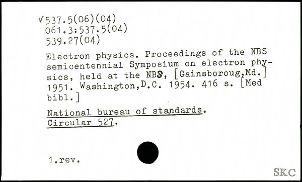 Electron physics. Proceedings of the NBS semicentennial Symposium on electron physics, held at the NBS, [Gainsboroug,Md.J 1951. Washington,D.C. 1954