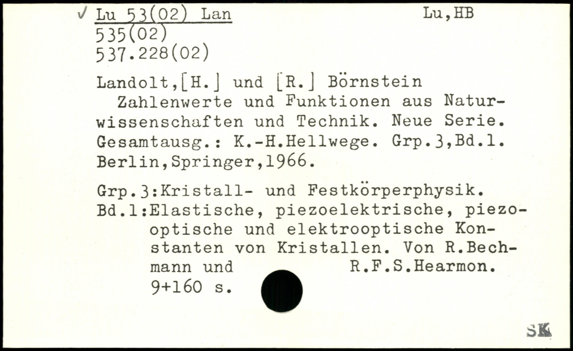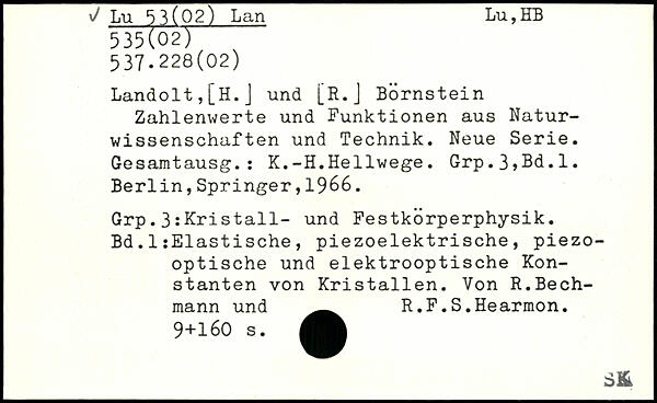 Landolt,[H.J und [R.J Börnstein Zahlenwerte und Funktionen aus Naturwissenschaften und Technik. Neue Serie. Gesamtausg.: K.-H.Hellwege. Grp.3,Bd.l.