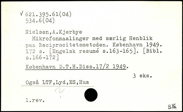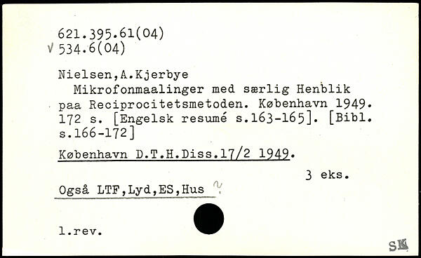 Nielsen,A.Kjerbye Mikrofonmaalinger med særlig Henblik paa Reciprocitetsmetoden.