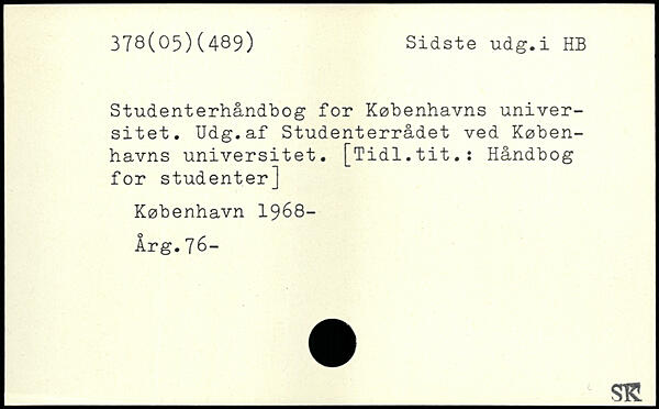 Studenterhåndbog for Københavns universitet. Udg.af Studenterrådet ved Københavns universitet. [Tidl.tit.: Håndbog for studenter]