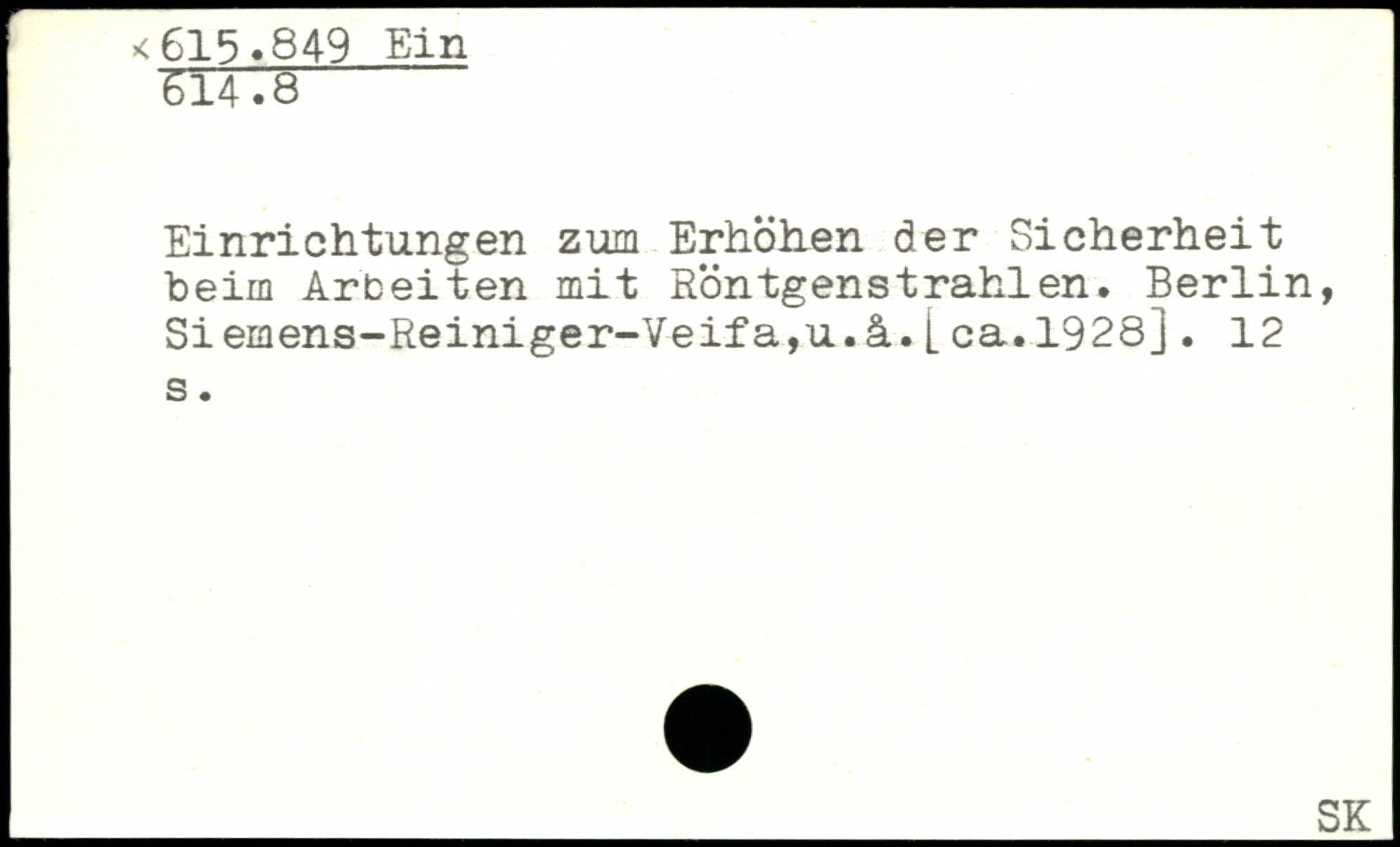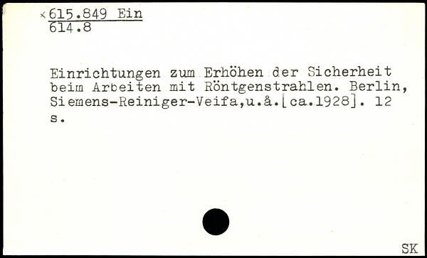 Einrichtungen zum Erhöhen der Sicherheit beim Arbeiten mit Röntgenstrahlen. Berlin, Siemens-Reiniger-Veifa,u.ä.Lea.1928].