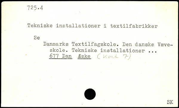 Tekniske installationer i textilfakrikker Se Danmarks Textilfagskole. Den danske Væveskole. Tekniske installationer 677 Dan Æske £ .7-)