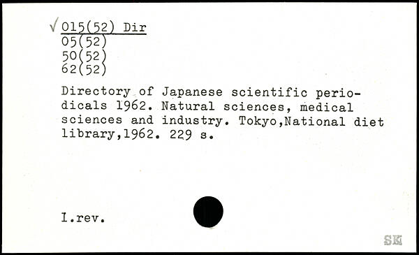 UDK: 015(52) Dir, 05(52), 50(52), 62(52)