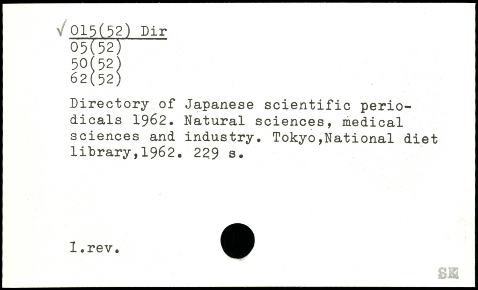 Directory of Japanese scientific periodicals 1962. Natural sciences, medical sciences and industry.