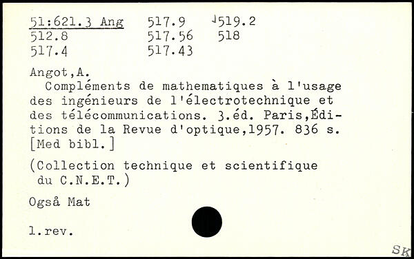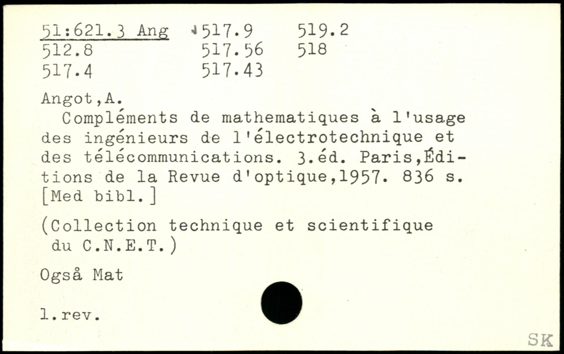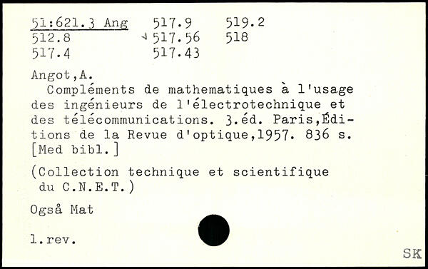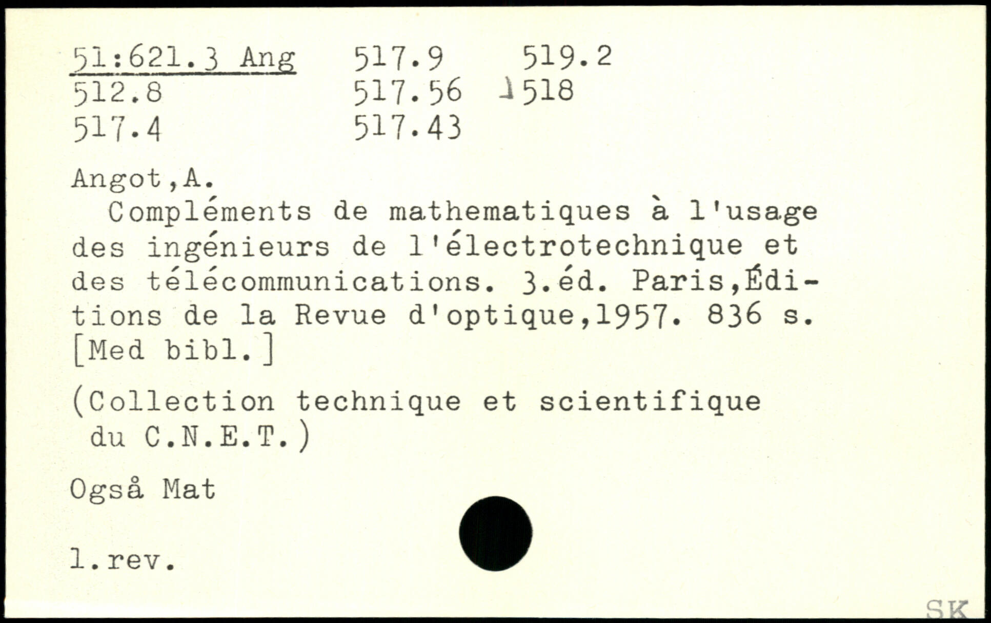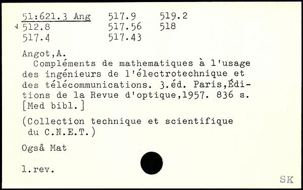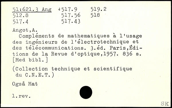 UDK: 621.3 Ang, 512.8, 517.56, 518, 517.4, 517.43