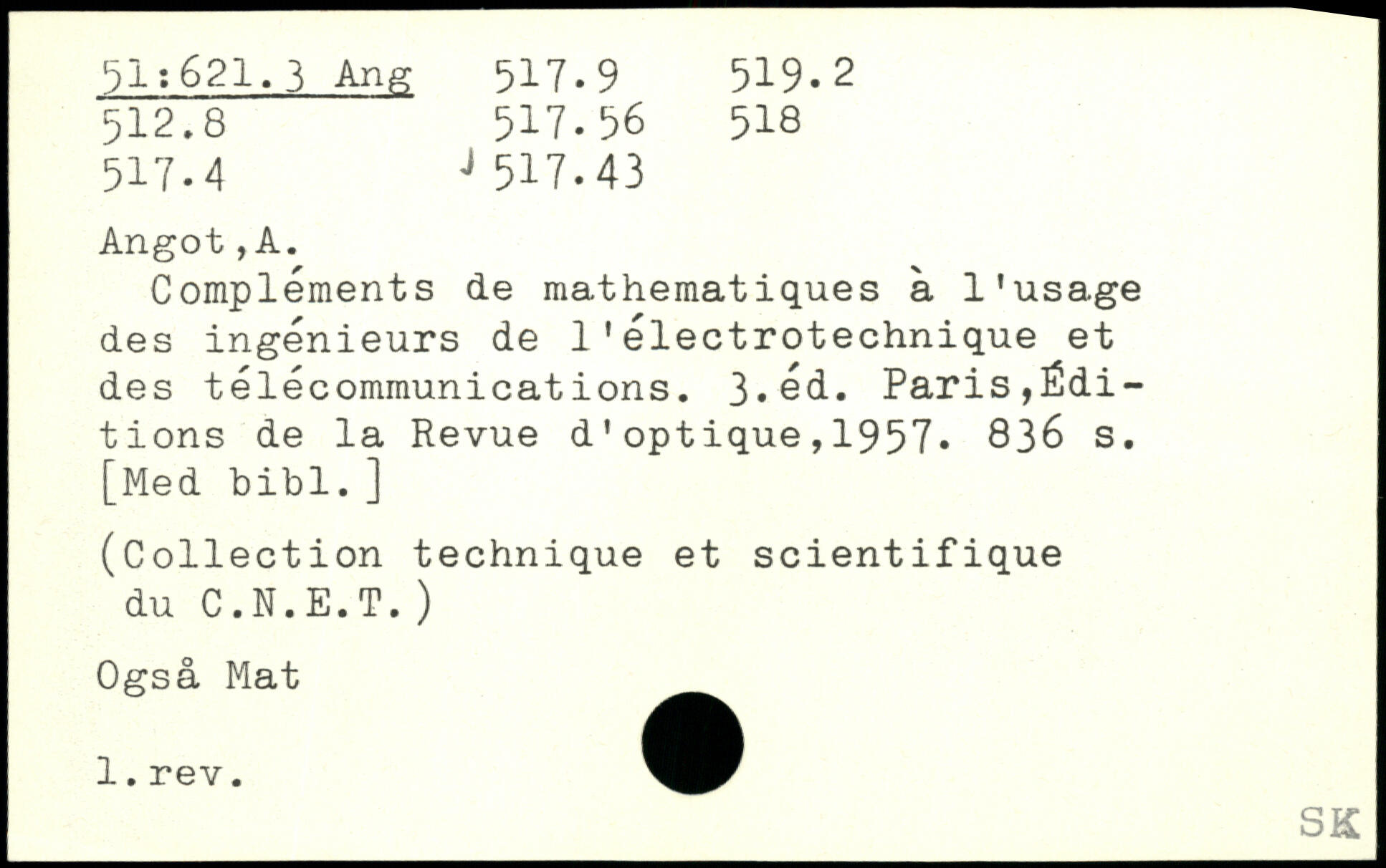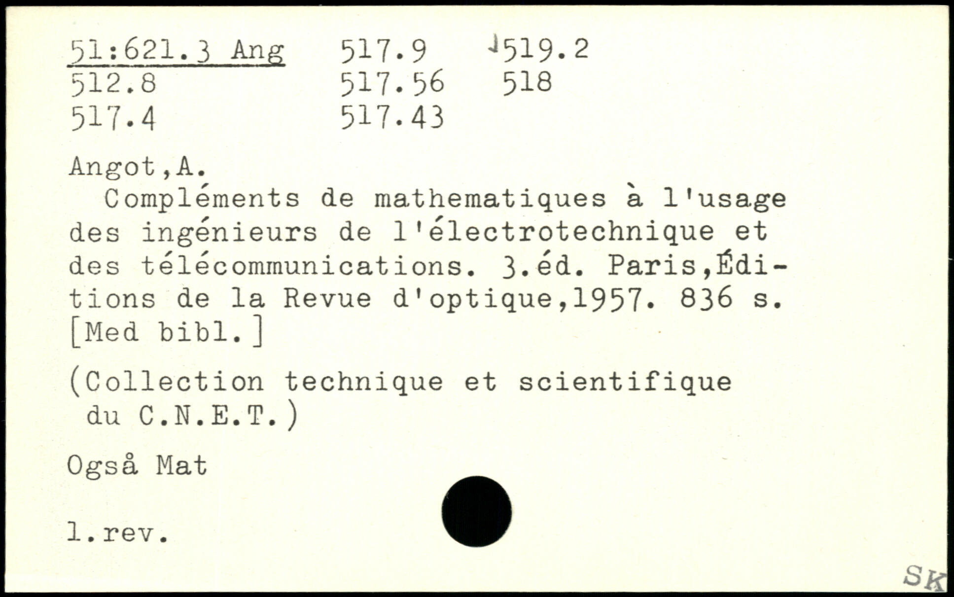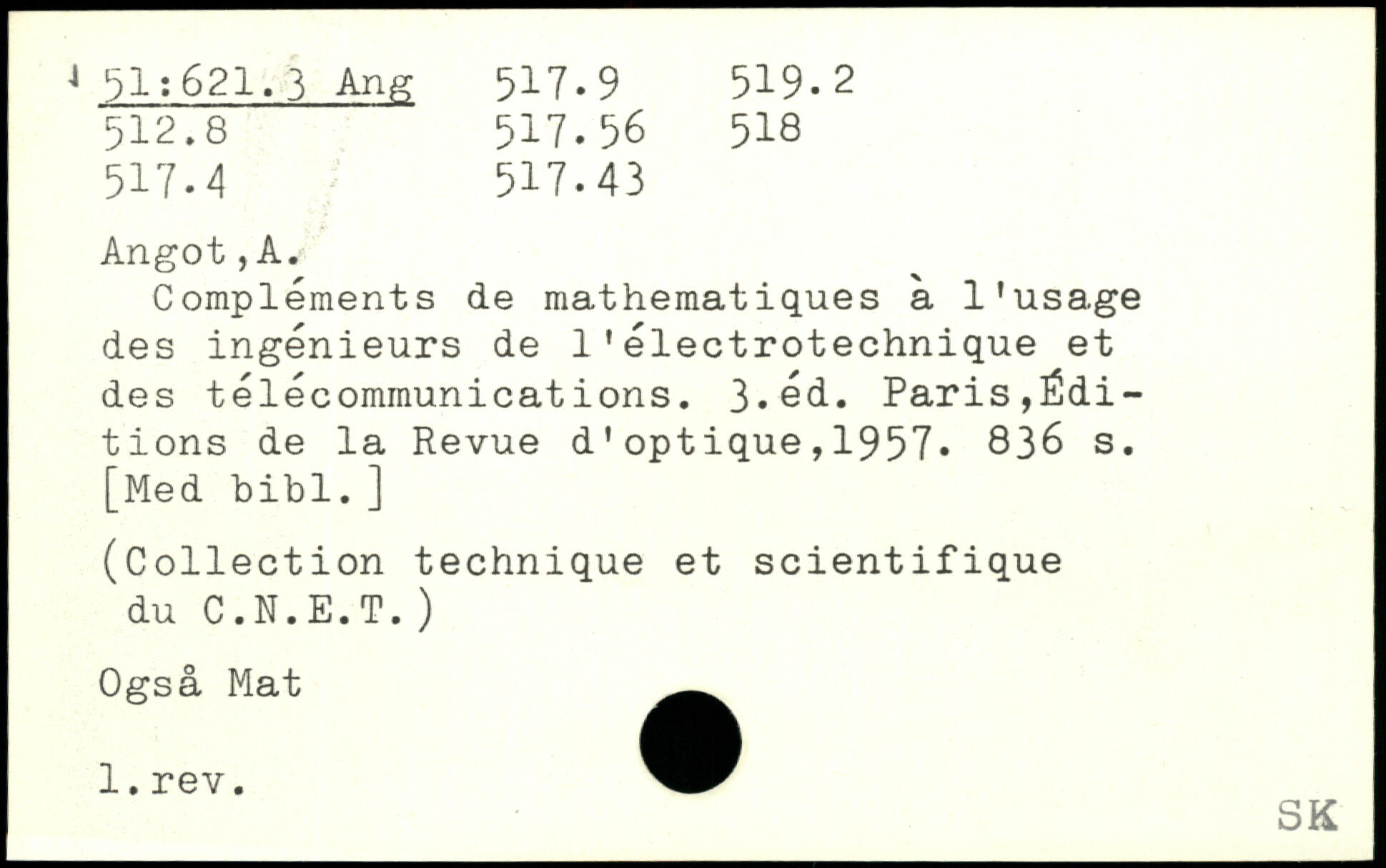 UDK: 621.3 Ang, 512.8, 517.56, 518, 517.4, 517.43