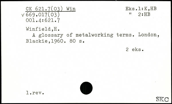 UDK: 621.7(03) Win, 669.017(03), 2, 001.4:621.7