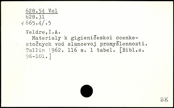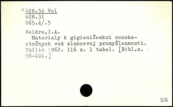 Materialy k gigieniceskoi o'cenke-stocnych vod slancevoj promyslennosti. Ta]]in 1962.