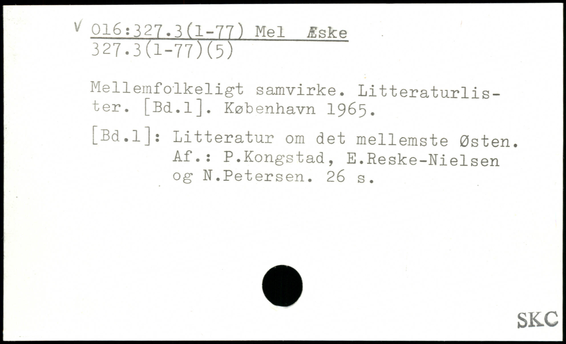 Mellemfolkeligt samvirke. Litteraturlister. [Bd.l].