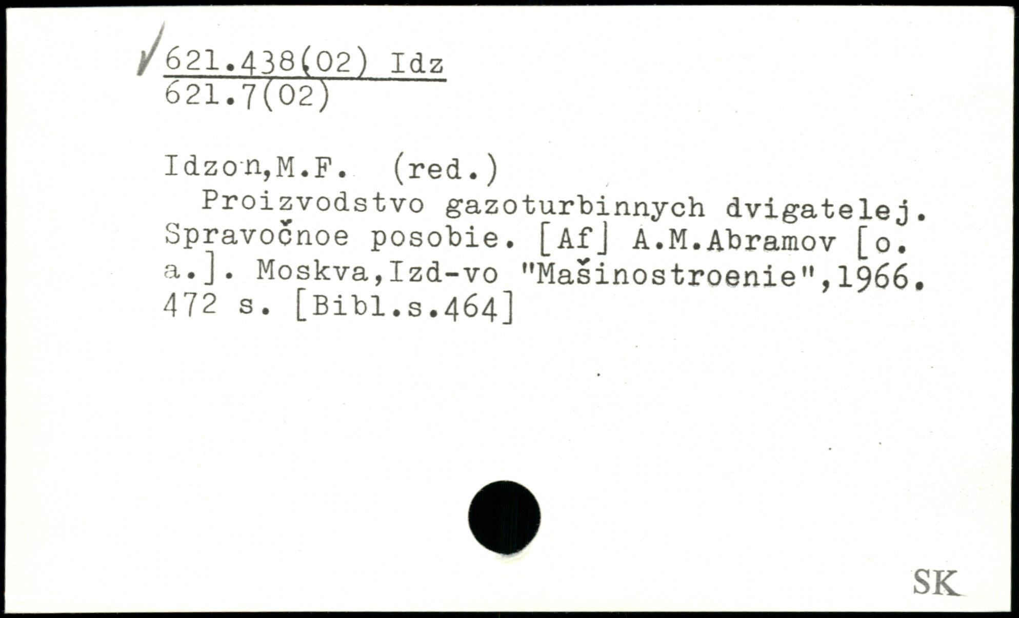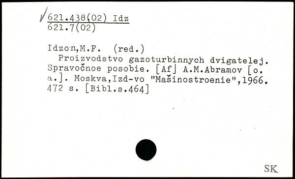 Idzo n,M.F. (red.) Proizvodstvo gazoturbinnych dvigatelej. Spravocnoe posobie. [AfJ A.M.Abramov [o. a.]. Moskva,Izd-vo "Masinostroenie",1966.