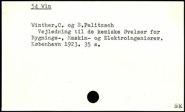 Vinther,C, og S.Palitzsch Vejledning til de kemiske Øvelser for Bygnings-, Maskin- og Elektroingeniører.