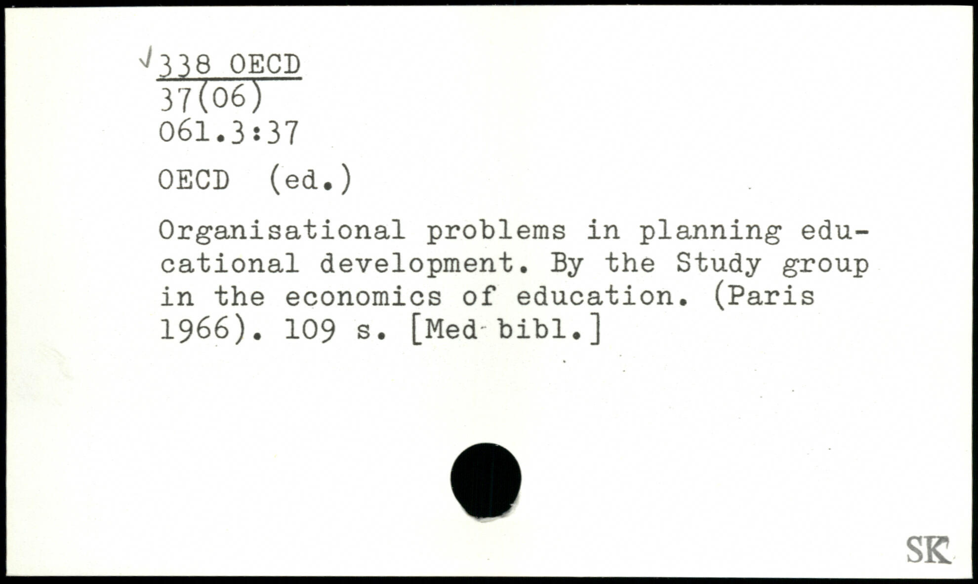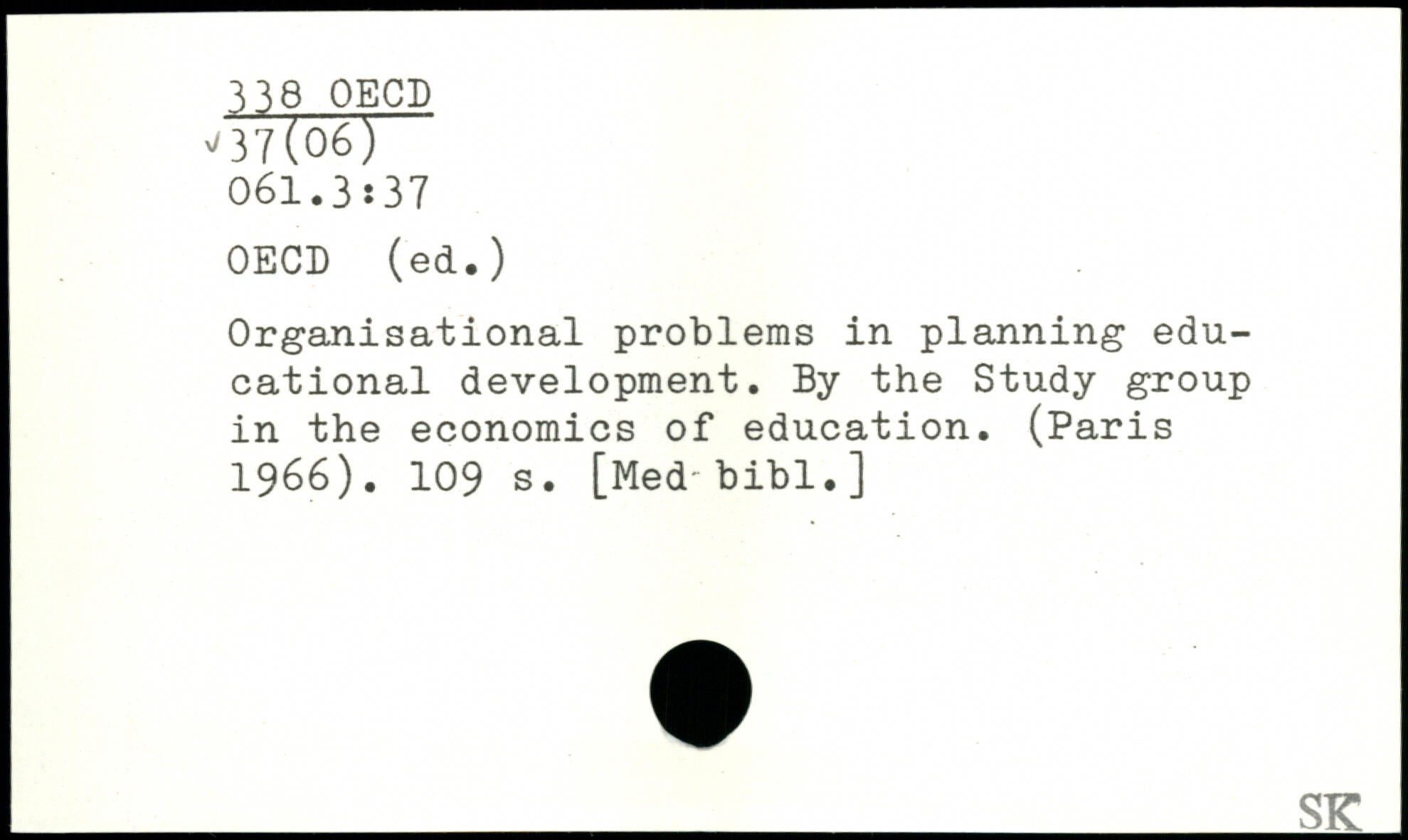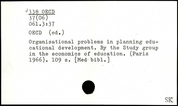 Organisational problems in planning educational development. By the Study group in the economics of education. (