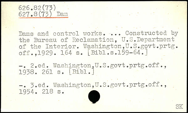 Dams and control works. ... Constructed by the Bureau of Reclamation, U.S.Department of the Interior. Washington,U.S.govt.prtg. off.,1929.