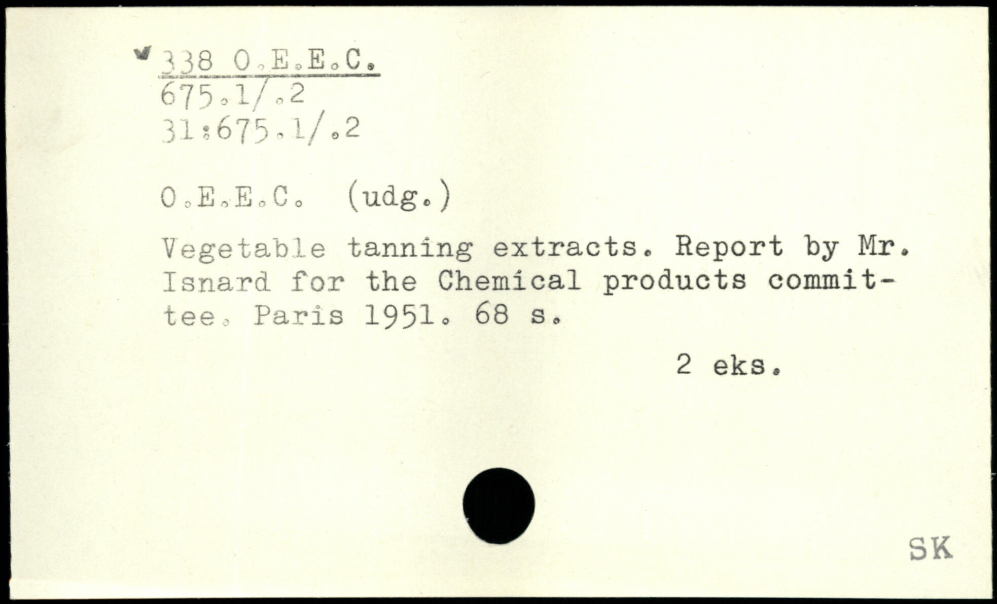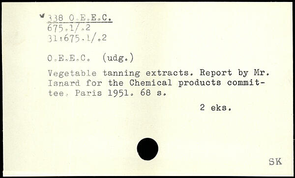 O.E.E.Co (udg.) Vegetable tanning extracts. Report by Mr. Isnard for the Chemical products committee.