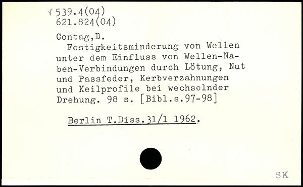 Festigkeitsminderung von Wellen unter dem Einfluss von Wellen-Na-ben-Verbindungen durch Lötung, Nut und Passfeder, Kerbverzahnungen und Keilprofile bei wechselnder Drehung.