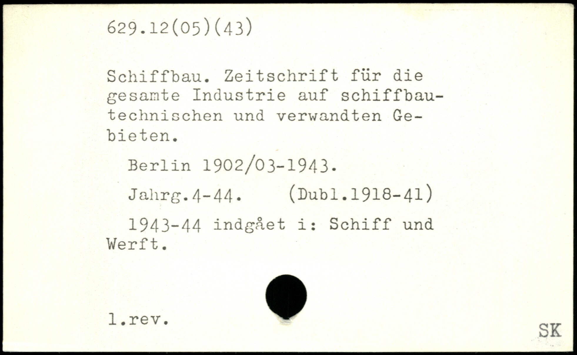 Schiffbau. Zeitschrift für die gesamte Industrie auf schiffbautechnischen und verwandten Gebieten.