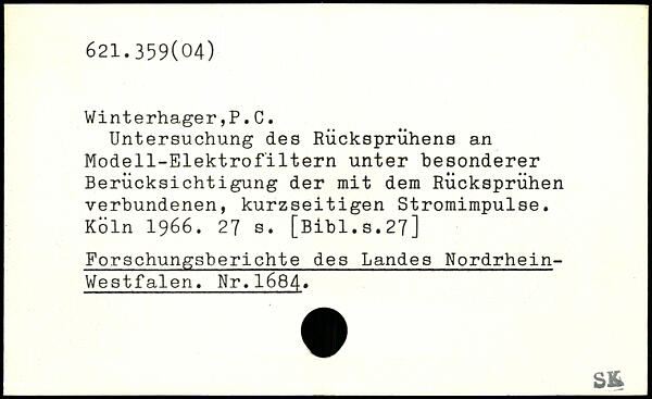 Untersuchung des Rücksprühens an Modell-Elektrofiltern unter besonderer Berücksichtigung der mit dem Rücksprühen verbundenen, kurzseitigen Stromimpulse.