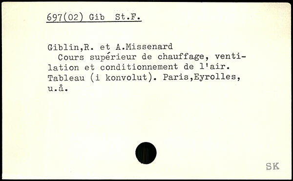 Cours supérieur de chauffage, ventilation et conditionnement de l'air. Tableau (i konvolut). Paris,Eyrolles, u.â.