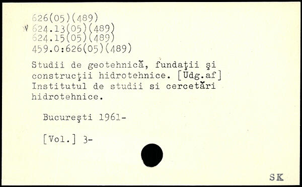 Studii de geotehnicå, funda^ii §i construc^ii hidrotehnice. [Udg.af] Institutul de studii si cercetari hidrotehnice. Bucureçti 1961-