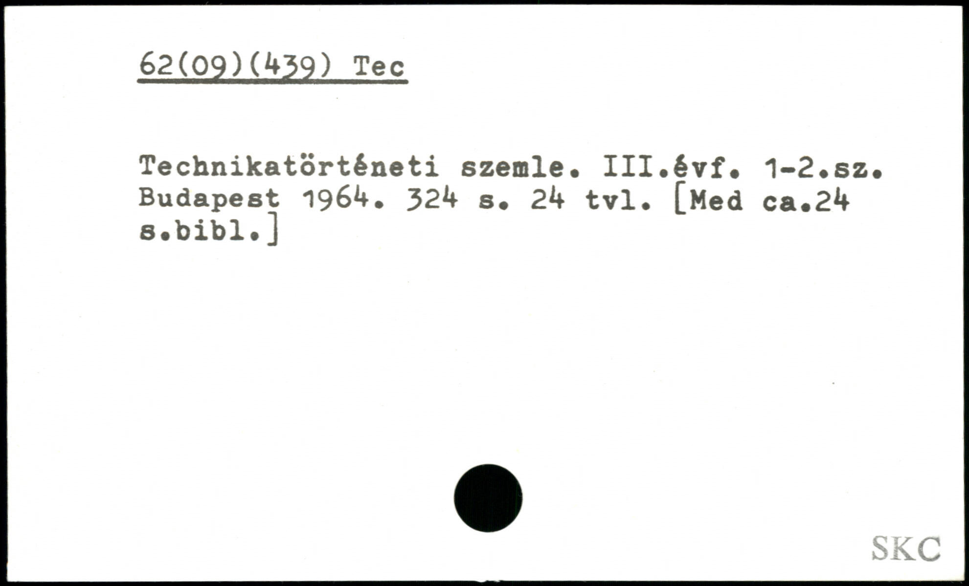 Technikatörténeti szemle. Ill.évf. 1-2.sz. Budapest 196^. 32k s. 2k tvl. [Med c&.2k s.bibl.]