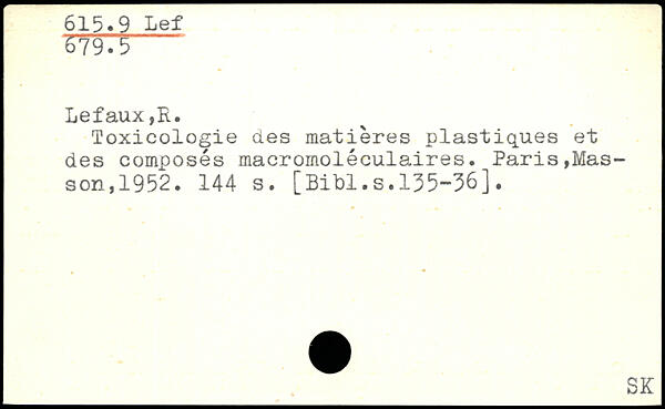 Toxicologie des matières plastiques et des composés macromoléculaires.