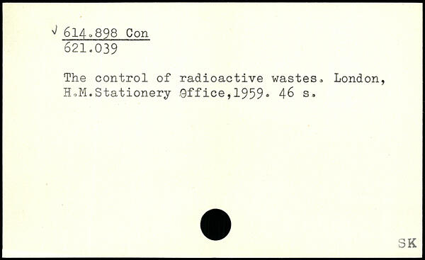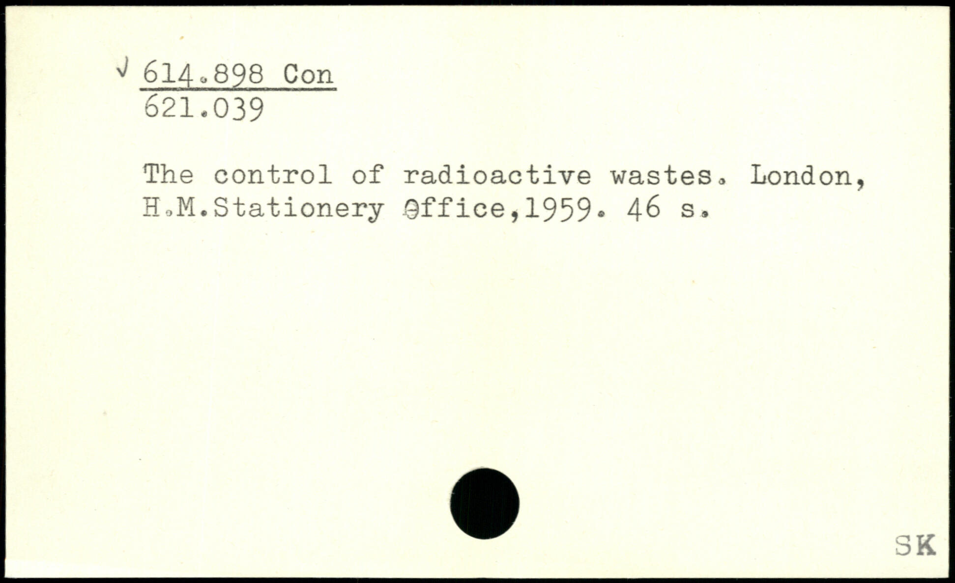The control of radioactive wastes. London, HoM.Stationery Office,1959.