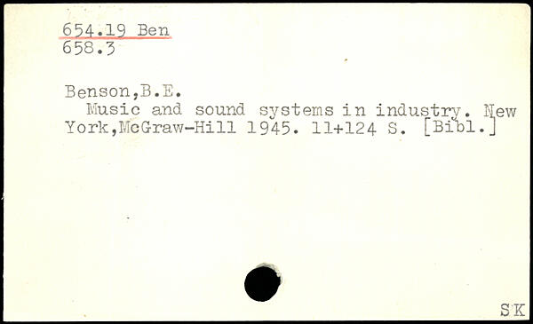 Music and sound systerns in industry. New York,McGraw-Hill 1945.