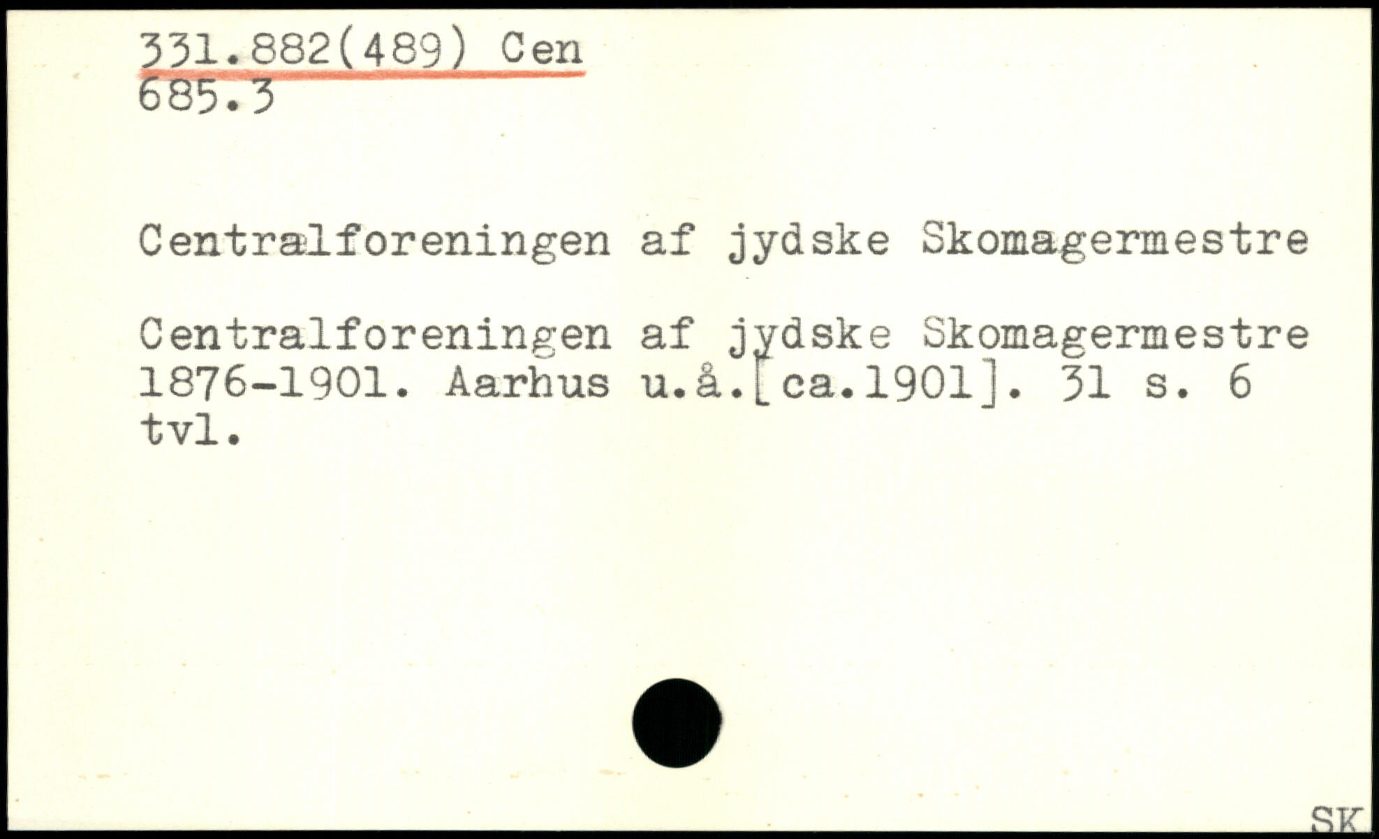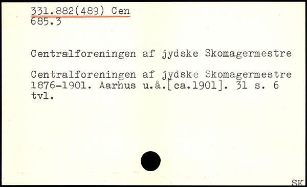 Centralforeningen af jydske Skomagermestre Centralforeningen af jydske Skomagermestre 1876-1901. Aarhus u.å.[ca.1901].