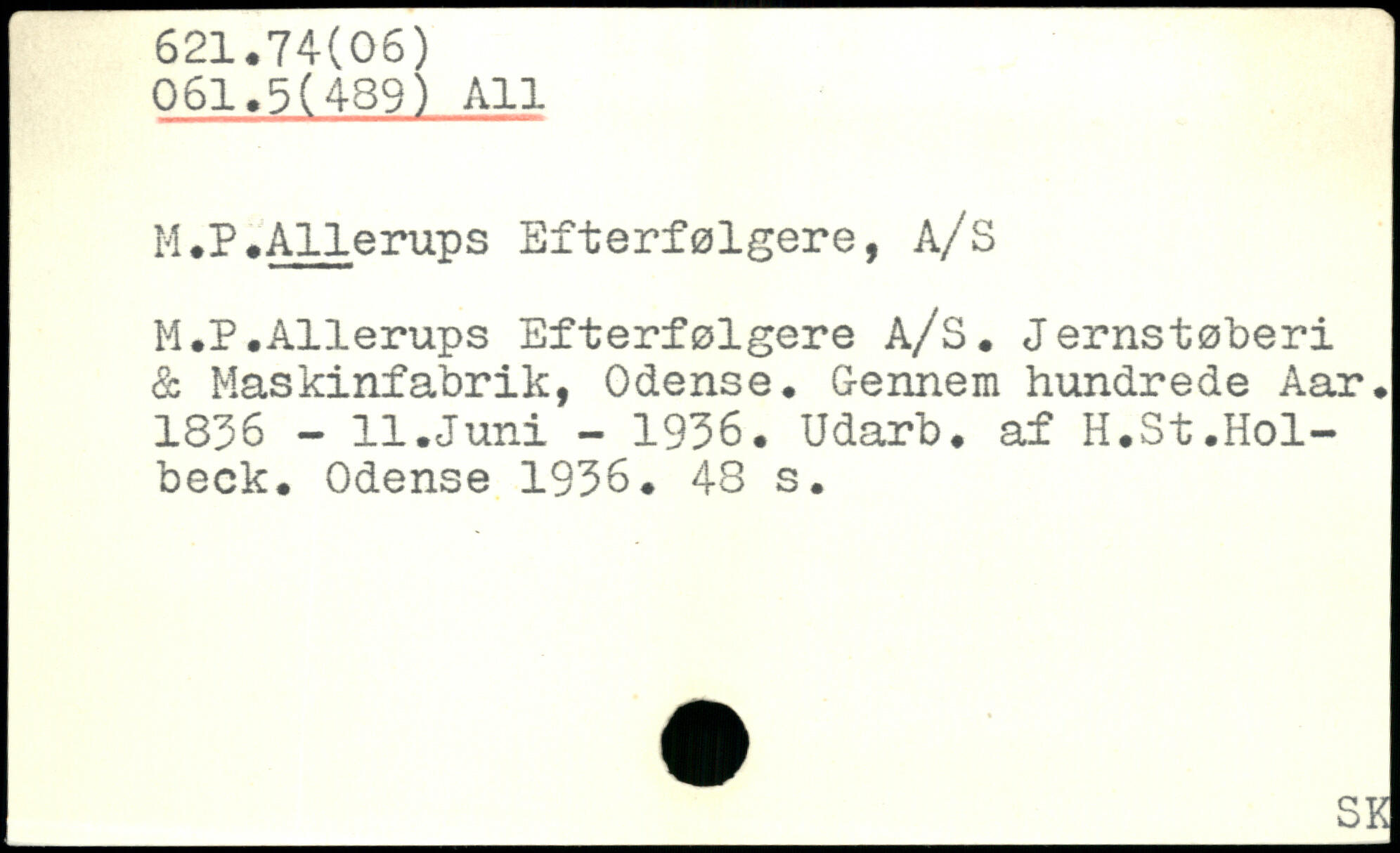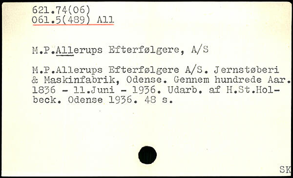 M.P.Allerups Efterfølgere, A/S M.P.Allerups Efterfølgere A/S. Jernstøberi & Maskinfabrik, Odense. Gennem hundrede Aar. 1856 - 11.Juni - 1956. Udarb. af H.St.Hol-beck. Odense 1956.