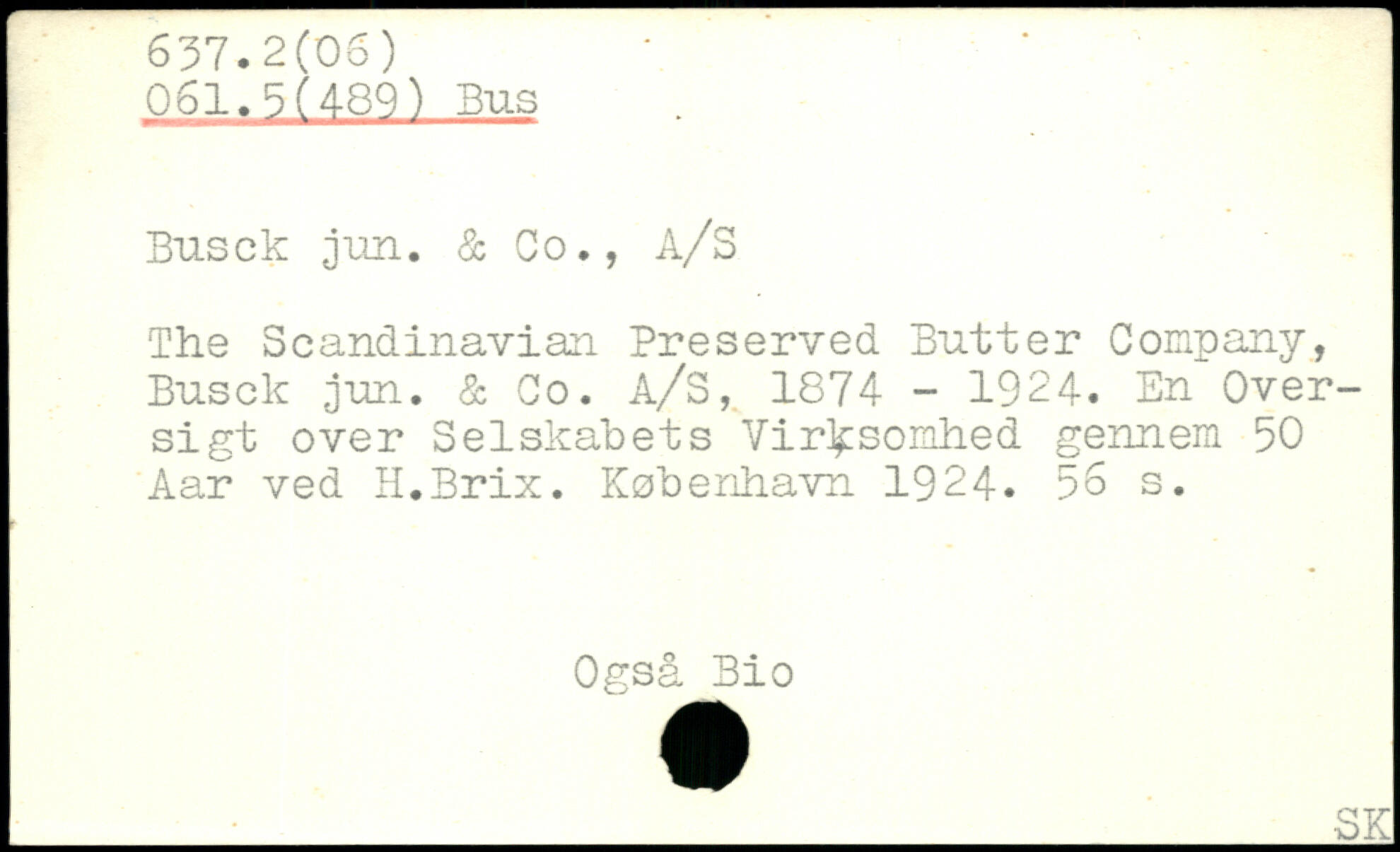 Busck jun. & Co., A/S The Scandinavian Preserved Butter Company, Busck jun. & Co. A/S, 1874 - 1924. En Oversigt over Selskabets Virksomhed gennem 50 Aar ved H.Brix.