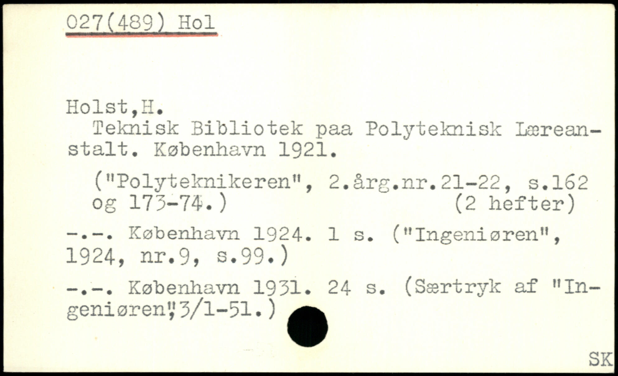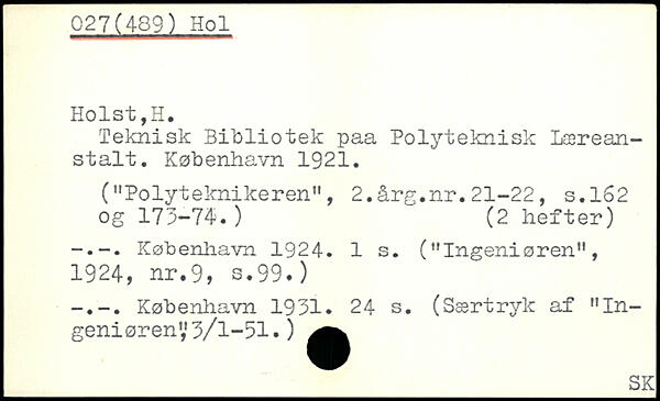 Teknisk Bibliotek paa Polyteknisk Læreanstalt.