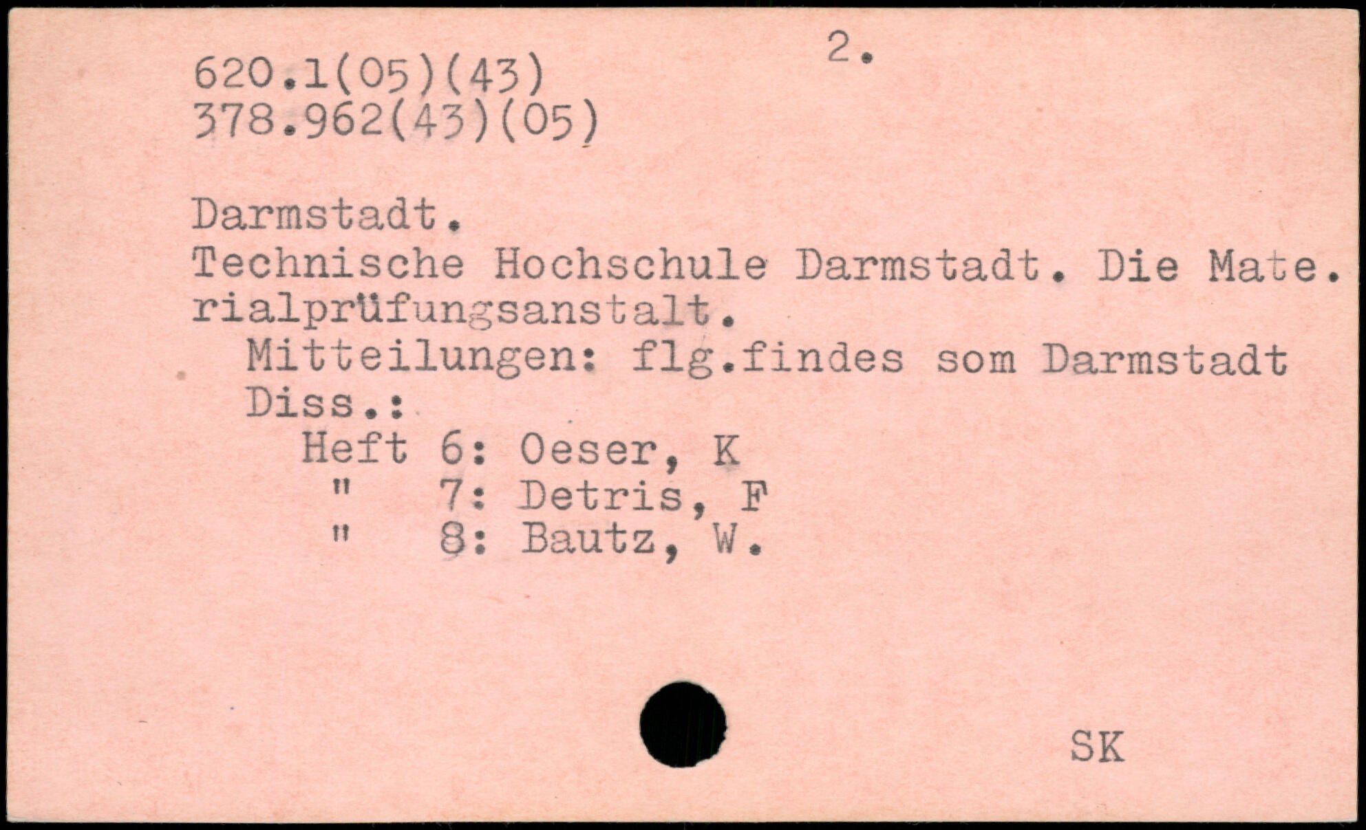 Technische Hochschule Darmstadt. Die Mate. rialprUfungsanstalt. Mitteilungen: fig.finies som Darmstadt Diss.: Heft 6: Oeser, K 11 7: Detris, F M 8: Bautz, W.