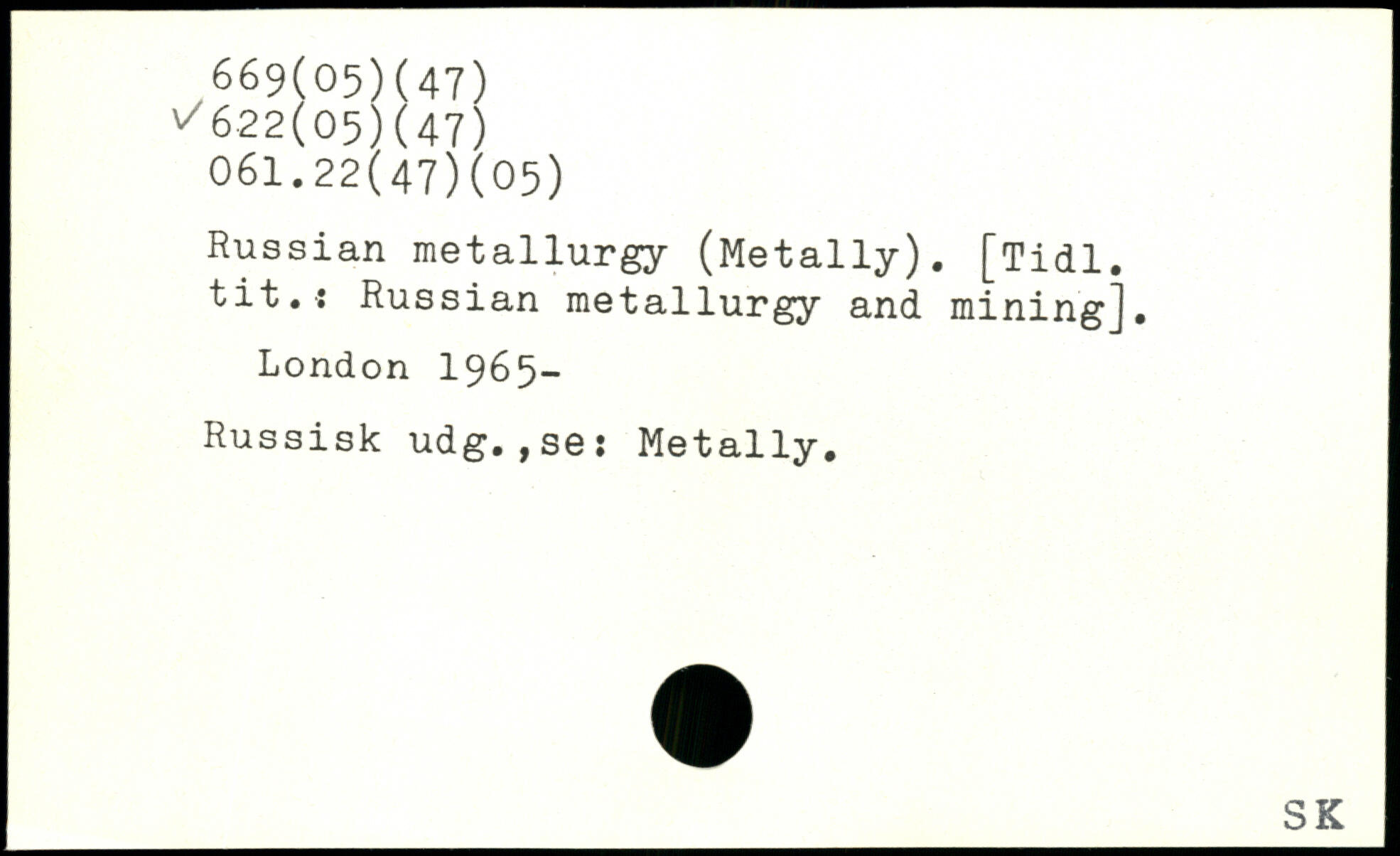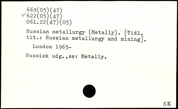 Russian metallurgy (Metally). [Tidl. tit.j Russian metallurgy and mining]